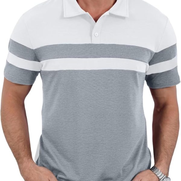 Mens Polo Shirts Short Sleeve Color Block T Shirt Summer Lightweight Casual Golf Shirts