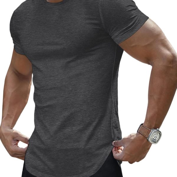 Mens Short Sleeve T Shirt Muscle Slim Fitted Crewneck Longline Tees Shirts for Gym Workout