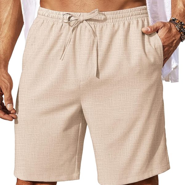 Mens Linen Shorts 9″ Elastic Waist Drawstring Casual Shorts Lightweight Summer Beach Shorts