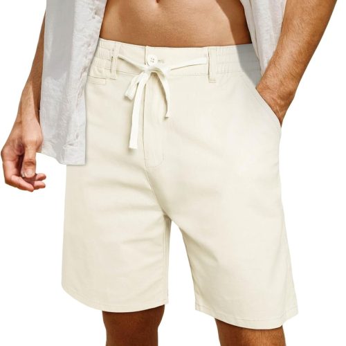 Mens Cotton Linen Shorts Casual 7 Inch Inseam Stretch Summer Shorts for Men Lounge Beach Vacation